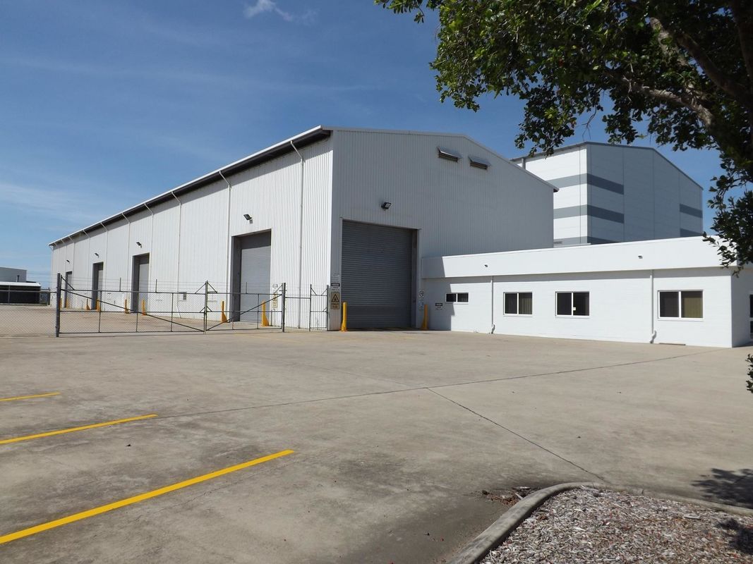 Tipe | Rangka portal, kemiringan ganda, spanjang tunggal, mezzanine sebagian menggantung di bawah balok atap. |